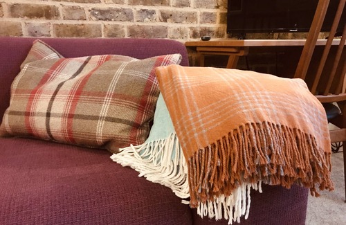Newly refurbished stunning open plan kitchen with modern and stylish units, Dualit toaster and kettle, and Denby tableware. The lounge area features antique dining table and 70s retro chairs, and two large comfortable fabric sofas. Plus flatscreen TV (with Netflix), fibre broadband and work desk. With cool artwork and a trendy exposed brick wall, which creates texture and an unusual warehouse vibe.