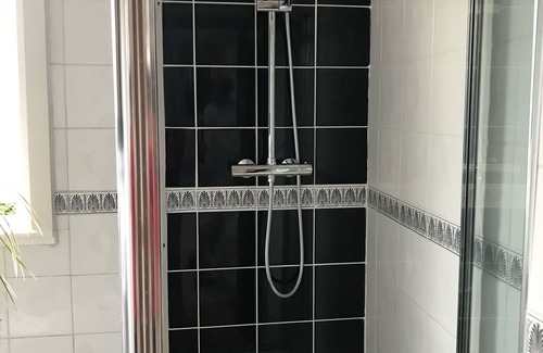 BATHROOM: Simple, clean and modern bathroom with extra-large shower cabin.