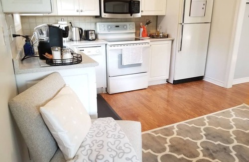 This unit is located on the second floor of the house and guest must be able to climb a few stairs to access the unit. The apartment is part of the detached, side-split house. Guests will have a separate private side door access to their apartment. Two dedicated parking spots are provided.