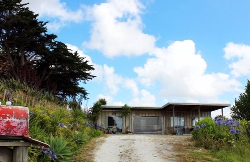 This modern looking bach is only 90 minutes north of Auckland and is an ideal place to enjoy the tranquility of the Kaipara region. Situated just ten minutes from Kaiwaka with its cafes and specialty shops, you can truly get back to nature while enjoying most of the comforts of home. We are perched on top of a hill and the resulting 280 degree views are amazing. Enjoy spectacular sunsets with uninterrupted rural views and views of the sea.