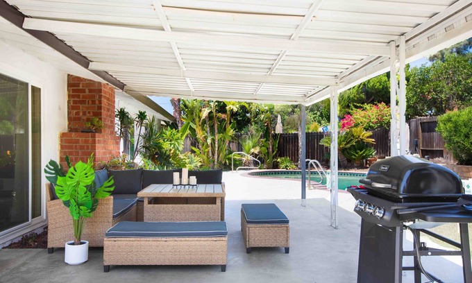 Inside the space you'll find a 65" HDTV (and more throughout the property), washer/dryer, quartz countertops, new appliances, central A/C in the house. The exterior features a pool and BBQ with a lounge area. The BBQ is already hooked up to the gas for your convenience to use.