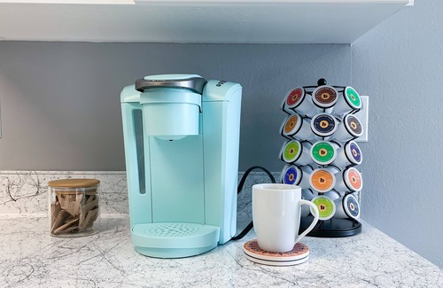 Kitchen is fully equipped with electric range, refrigerator, dishwasher, microwave, plus all the basics for preparing meals, as well as an Instant Pot, Keurig K-Select Coffee Maker, coffee pods & tea.