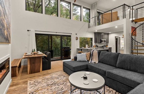 Set in the lush, cooler surroundings of Oak Creek Canyon, just 4 miles from Sedona, Oak Creek Hideaway combines modern comforts with touches of luxury. This stylish new build features 2 stunning master suites, open-plan living, and 2 outdoor decks. A 6-seater hot tub, fire pit, and high-end barbecue set the stage for shared moments and lasting memories. With a tree-lined fenced yard and epic canyon trails, it's the perfect getaway for couples, friends, and family.