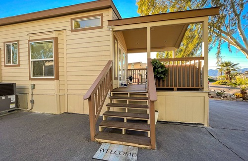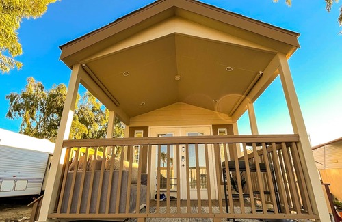 Whether you're a first-timer in a tiny home or a seasoned small living enthusiast, our cozy and modern retreat is designed for everything you need. Enjoy your days on the river, test your luck at the casinos, and return to your oasis for a soak in the hot tub, a workout in the pool, or simply to marvel at the stunning Arizona sunsets.