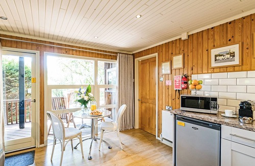 - Cosy and comfortable lodge with king-size four poster bed.