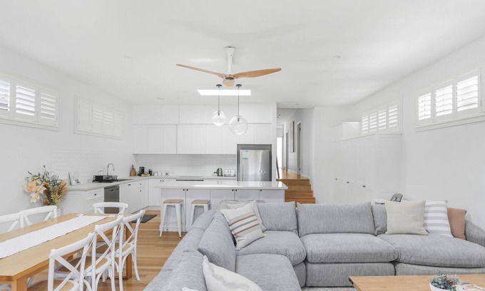 Just 250 metres from the glistening shores of Lake Macquarie, this stylish Warners Bay retreat delivers the kind of effortless relaxation that makes holidays unforgettable. Surrounded by calm, lakeside energy and designed with connection in mind, this private two-level escape is perfect for families or friends chasing a little indulgence. Spend your days strolling the lakefront, lazing by the pool, or sharing sunset drinks on the entertainer’s deck - every moment here invites you to relax, recharge, and reconnect.