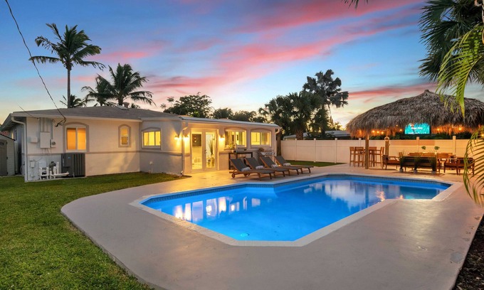Stylish & Renovated 4BR W/Tiki + Heated Pool | House in Dania Beach