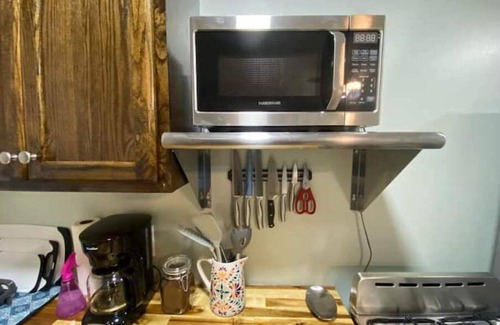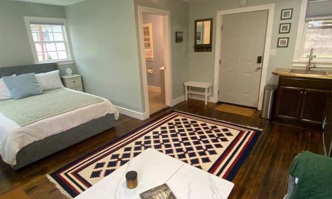 The tiny house (a.k.a the Post Office) is a stylish stand-alone studio home with a full bathroom and a very large covered back deck. The house was gutted and fully renovated; renovations were completed in March 2024.
