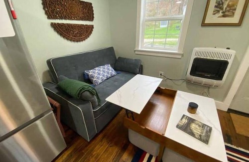 Kick back and relax in this calm, stylish space directly on the Gauley River. Once a Post Office from the early 1900s, this 300 sqft tiny home has been thoughtfully converted into a comfortable getaway. Push a kayak in and float the calm river, enjoy a beverage on the spacious back porch, or make progress on that novel. Take a short drive to a number of wilderness ventures, including the majestic New River Gorge. Whatever your pleasure, you can find it here.