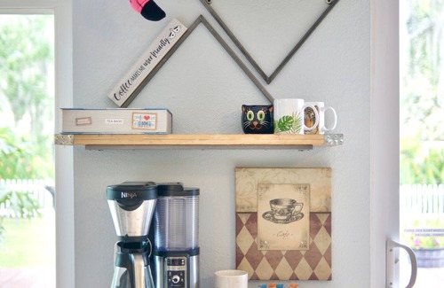 As you pass through into the enclosed, under-air Florida room you can enjoy a functional coffee bar with all the amenities and goodies you need for your morning brew. The glass slider opens up to your own private backyard, which includes various seating areas and a gas grill for all your barbecuing needs. Depending on your time of visit you may find fruit in season. Feel free to pick and enjoy bananas, avocado, papaya, calamondin, lemon, loquat, and mango.