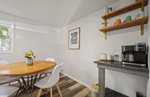 Enjoy the newly remodeled kitchen with granite counters and luxury coffee bar. We offer k cups, ground coffee, decaf, and tea for all of our travelers. The kitchen is fully stocked with pots, pans, plates, toaster, crock pot, water and any kitchen tools needed to chef out.