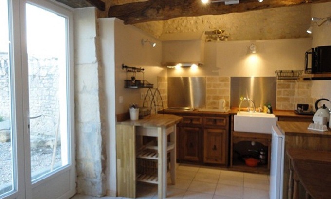 L'Ecurie used to be a stable and now it's a spacious studio apartment with country style kitchenette and wet room, like a boutique hotel room, but better (we think !) . It's one of a cluster of 4 individually styled character gites at La Fermette France, based in the sunny Poitou Charente region of South Western France (check our La Fermette France website) which share a 10mx5m pool, a Games Barn and a separate leisure field with boules pitch.