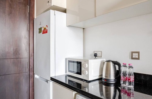 The studio is fully furnished and comes with high-speed Wi-Fi which is perfect for our business and leisure travelers. The apartment showcases a King-sized bed that is fitted with hotel-quality linens, The padded mattress provides unbelievable comfort for a great-night's sleep,Also its in High Floor So The Guset Will Enjoy The