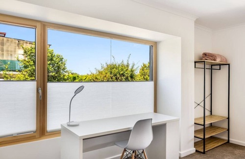 This expansive studio apartment offers two spacious bedrooms, each with a queen bed, in a private garden setting. The kitchenette includes a microwave, portable induction stove, and essentials for light meal preparation. The living area is stylishly adorned with original artworks and boasts stunning views of Mount Wellington and the Tasman Bridge. Outdoor spaces include a deck and grassy area, perfect for relaxing. Private off-street parking ensures convenience. The main residence is occupied upstairs, but the studio remains a quiet and private retreat.