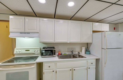 Stylish Studio efficiency. Close to shopping and airport, while being nestled on 35 acres of wooded walking paths. Queen bed, futon, full kitchen, bathroom with shower, designated parking and serene comfort.