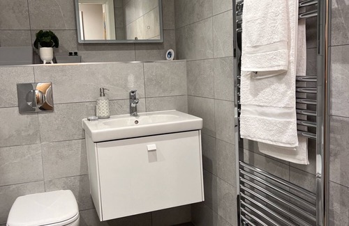 The apartment comes with a fully stocked kitchen to facilitate all desired meals. On arrival, we provide a range of teas, coffee, milk, sugars, sweeteners and biscuits to sweeten your arrival and take away the minor inconveniences, allowing you a stress-free stay. The bathroom is also fully equipped with toiletries. The space shall provide everything you desire, situated on the ground floor, the welcoming, open-plan lounge area comes with an expansive, corner sofa with a 43'' Smart TV, expanding into the dining area, fit to suit work needs. The bedroom comes with a Super King bed with Egyptian cotton sheets, drawers and plenty of space to store and hang clothes, and store shoes and bags. The kitchen is provided with a multi-purpose oven, microwave, a vast array of pots, pans and utensils, and a large fridge/ freezer.