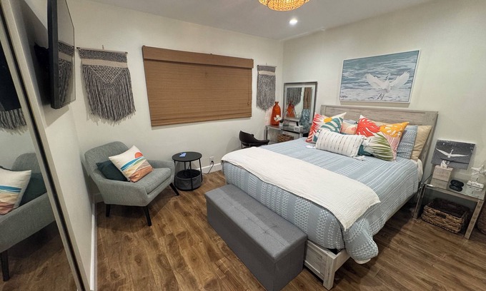 - Stylish suite near beach & LAX—private entry, vibrant decor, cozy comfort.
