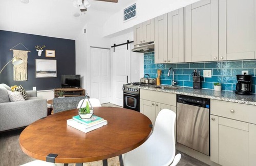 This thoughtfully designed dwelling maximizes comfort and style in every corner. You’ll find a bright, open living area, a fully equipped kitchen, a sleek modern bathroom, and all the essentials you need for a relaxing stay. High-speed WiFi, streaming TV, climate control, premium linens, toiletries, and ambient lighting create a sense of home from the moment you arrive. Outside, a private patio invites you to unwind, sip coffee, or read under the sky.