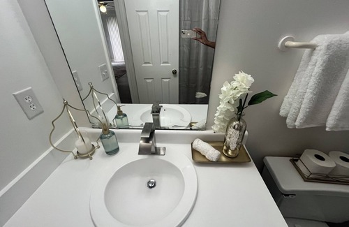 Welcome to your stylish guest room in a peaceful Greensboro townhome! This cozy, modern glam space is designed for solo travelers or couples seeking comfort, privacy, and convenience. You’ll have exclusive access to your own guest bedroom and hallway bathroom, plus the living room and kitchen for light use.