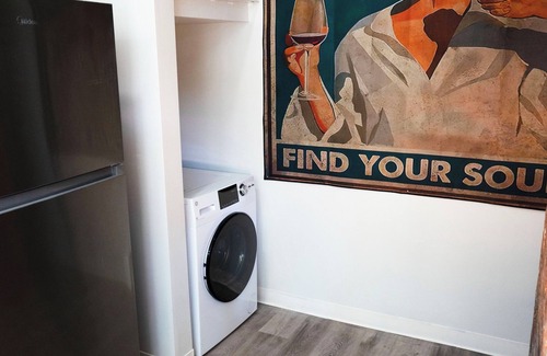 A washer and dryer are conveniently located within the loft, so you can refresh your wardrobe with ease during your stay