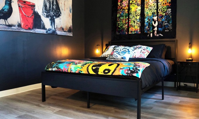 Welcome to our stylish urban art oasis in the heart of Detroit! This stunning loft combines the best of artistic flair and comfort, offering an unforgettable stay in a city full of energy and culture. With iconic exposed brick walls, the loft captures the true essence of industrial charm while remaining warm and inviting. where urban art and graffiti, including pieces from legendary artists like Banksy, create a unique and inspiring atmosphere perfect for unwinding after a busy day.