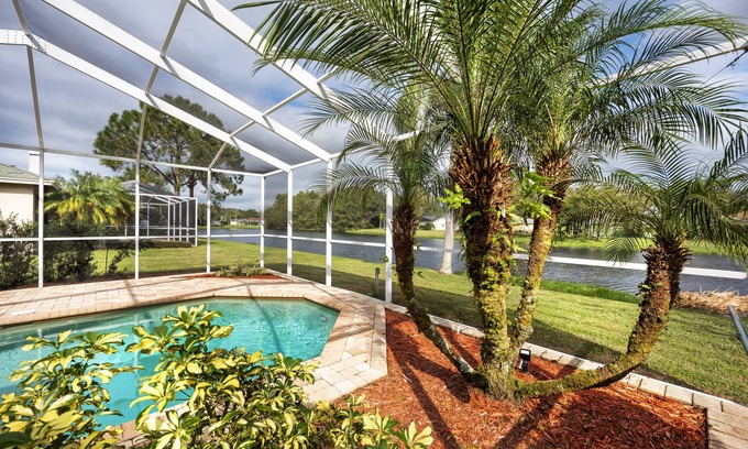 This is a very clean home located in a beautiful community with private swimming pool and covered lanai. Swimming pool is solar heated during October through April. Please note that the heater is highly dependent on outside air temperature. If the outside temperature drops below 50, the solar heater may not be efficient enough to bring the pool temperature to the set temperature. No Refunds will be given in that situation as the heater was working per guests’ request.