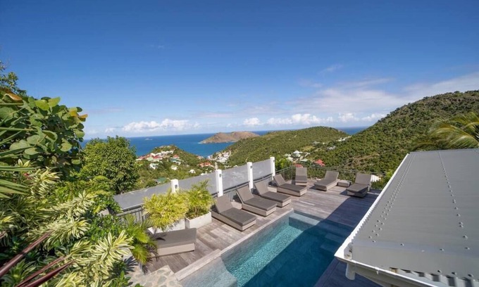 Welcome to Stylish Villa LENALEE with Waterfall Pool and Gym, a breathtaking escape nestled on the hilltop of Flamand Bay in Gustavia. This stunning villa offers an ideal setting for your dream wedding, combining exclusivity and elegance with unparalleled amenities. Imagine exchanging vows with the picturesque ocean views as your backdrop, followed by an unforgettable celebration surrounded by friends and family in a luxurious atmosphere that feels like a private paradise.