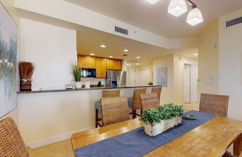 Located adjacent to the marina, this open-concept 2BR/2BA condo has a balcony with water views and an array of resort-style amenities. Choose from the complex's two pool facilities, the gym, tennis courts, or a basketball court. Kids will adore the on-site playground. This complex's atmosphere is ideal for those who like live music every now and then and a lively spot to spend their vacation.
