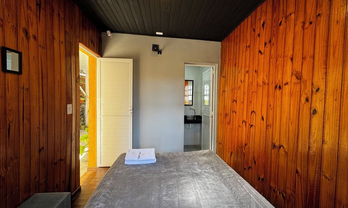 - Chale de Madeira - Lareira e Fogueira-lindo gramado com mesa para café da manhã, churrasqueira e fogueira