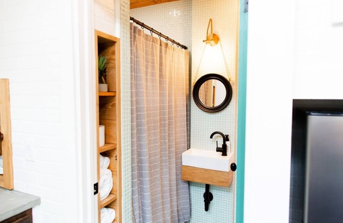 This new construction tiny house was specifically designed with guests in mind. Including a king size bed and above average size stand up shower, there are many comforts to be had in this intimate space. Decorated with an urban modern vibe, you're sure to feel like you've found a trendy paradise, tucked into a conveniently placed suburban neighborhood.