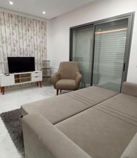 Sublime appartement le Palace Hammamet Nord Mrezga - Family only is located in Hammamet, just a 16-minute walk from Hammamet Beach and 3.7 miles from Neapolis Museum. This property offers access to a balcony, free private parking, and free Wifi. Kasbah of Hammamet is 6 miles from the apartment and Carthageland Hammamet is 6.2 miles away. Providing a terrace and pool views, the spacious apartment includes 1 bedroom, a living room, flat-screen TV, an equipped kitchen, and 1 bathroom with a walk-in shower. Towels and bed linen are provided in the apartment. For added privacy, the accommodation has a private entrance and soundproofing. George Sebastian Villa is 7.1 miles from the apartment, while Pupput Roman Site is 9.4 miles away. Enfidha-Hammamet International Airport is 39 miles from the property.