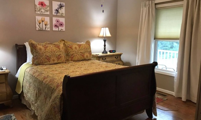 Close to the Blue Ridge Parkway. One bedroom, queen bed, full kitchen, living room, fully furnished vacation getaway. Whatever you can you imagine you may need to settle in, this place has it! Beautiful country setting with pond on acreage. Come stay and enjoy being close to kayaking, hiking, driving the parkway, wineries, etc. Non-Smoking and well behaved and house trained pets welcome. Stay a night or as long as you want! Special weekly rates available. Super clean!