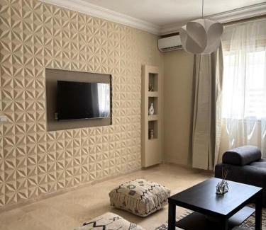Sublime T3 bord de mer avec piscine & Balcon I Proche Aéroport offers accommodations in Hajreien, 6.7 miles from Ibn Batouta Stadium and 11 miles from American Legation Museum. This property offers a private pool, free Wifi, and free private parking. Forbes Museum of Tangier is 11 miles from the apartment and Dar el Makhzen is 11 miles away. Providing a balcony and pool views, the spacious apartment includes 2 bedrooms, a living room, flat-screen TV, an equipped kitchen, and 2 bathrooms with a bath and a shower. Towels and bed linen are provided in the apartment. The accommodation is non-smoking. Guests can also relax in the garden. Kasbah Museum is 11 miles from the apartment, while Tanger City Mall is 11 miles away. Tangier Ibn Battuta Airport is 4.3 miles from the property.