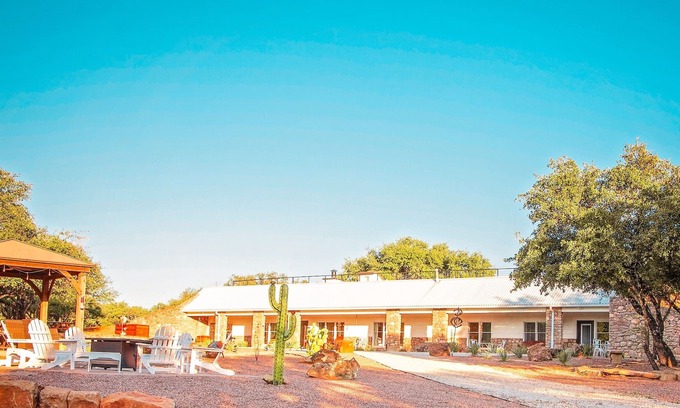 Oak Ranch Resort is an inspiring destination with something for everyone, that offers quiet luxury near Graham, Texas and just North of Possum Kingdom Lake, Texas. The Resort is only minutes away from the Brazos River, where you can fish or canoe. Hiking or biking trails to the fishing pond. Home to wildlife, fishing, stargazing, adventure, or just relaxing. Each unit includes a private hot tub and fire pit with Adirondack chairs, outdoor games such as: horse shoes and corn hole games. The pool and gazebo area as well as multiple meditation areas are located around the resort.
