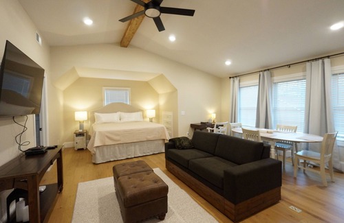 Brand new Greer studio is in a highly-sought after area on a large lot. Convenient to I-85 and I-385. King bed, work space, TV, kitchenette, dining and living areas. You'll find all the essentials you need for a terrific stay, including comfy linens, a work space, WiFi, an iron, a hair dryer, bathtub and shower, and a stocked kitchenette. Whether you're here for work or leisure this space is modern and comfortable. Feel free to reach out to us during your stay - we're happy to suggest local spots to check out.