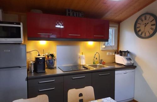 A recently renovated chalet in Gravières, Sud Ardeche joli chalet clim piscine rivière LE CERF Village du serre offers sun terrace, private parking, and sports facilities. The chalet, set in a building dating from 2011, is 25 miles from Pont d'Arc and 26 miles from Ardeche Gorges. The mountain views are a highlight at the chalet's pool. With free Wifi, this 2-bedroom chalet offers a cable flat-screen TV, a washing machine, and a fully equipped kitchen with a dishwasher and oven. The air-conditioned unit at the property features a shower and a dressing room. The property has an outdoor dining area. For guests with children, the chalet provides outdoor play equipment. Guests at Sud Ardeche joli chalet clim piscine rivière LE CERF Village du serre can enjoy cycling and hiking nearby, or make the most of the garden. Paiolive Wood is 6.1 miles from the accommodation, while Chauvet Cave is 25 miles away. Nimes-Ales-Camargue-Cevennes Airport is 60 miles from the property.