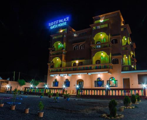 Featuring pool views, Sud Est Palace in Aït Ridi offers accommodations, an outdoor swimming pool, a garden, and a shared lounge. Private parking is available on site at this recently renovated property. The guest house features mountain views, a sun terrace, a 24-hour front desk, and free Wifi is available throughout the property. At the guest house, units have a desk. There's a private bathroom with walk-in shower in every unit, along with slippers, a hair dryer, and free toiletries. Guests are welcome to eat at the on-site family-friendly restaurant, which is open for dinner, lunch, and high tea. Bike rental and car rental are available at this guest house, and the area is popular for cycling. The guest house also comes with outdoor fireplace and a picnic area for a day outdoors. Kasbah Amridil is 26 miles from the guest house. Ouarzazate Airport is 48 miles from the property, and the property offers a paid airport shuttle service.