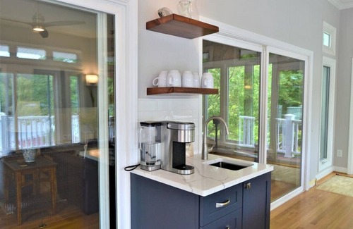 Sunroom with lake views & a coffee station (Keurig, electric kettle, and sink)