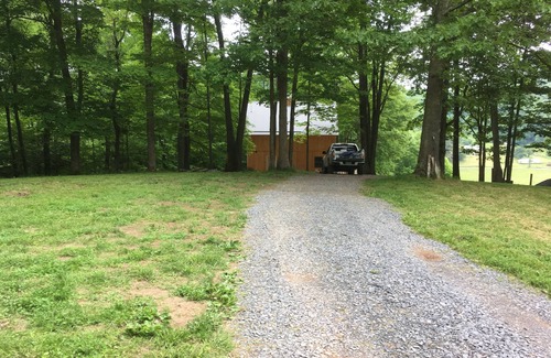 In Grassy Meadows, WV..1200 sq ft cabin., nestled in a little clearing on top of the hill. Features 2 bedrooms, 2 full BR, Kitchen, dining and living area. Hardwood flooring throughout! Large porch, small patio for grilling and an inviting fire circle. Built with a lot of care, and attention to details and trends. Every room contains a little "family history"! Old doors, grandmas kitchen sink, pine boards, walnut boards, poplar boards, maple slabs, beams, stair rails, trim; all gathered up from around the farm. Paved single lane road all the way to entrance. Good gravel road access through the woods, all wheel drive or 4x4 recommended in winter when we have snow, especially in January and February. 10 minutes to I64. 40 minutes to Beckley, Lewisburg, and Hinton. 2 hrs from Roanoke, VA or Charleston, WV. A few more minutes east of Lewisburg, ( home of the WV State Fair), you can be in White Sulphur Springs for the annual Greenbrier Classic. We have the Greenbrier State Forest and the river trail within 45 minutes. Babcock State Park, Pipestem State Park, Grandview State Park, New River Gorge, Twin Falls State Park, Sandstone Falls, all within surrounding counties. Excellent area to kayak, horseback ride, trout fish, bike ride or bring your ATV's. Welcome to hike around the farm and see all the farm animals and wildlife.