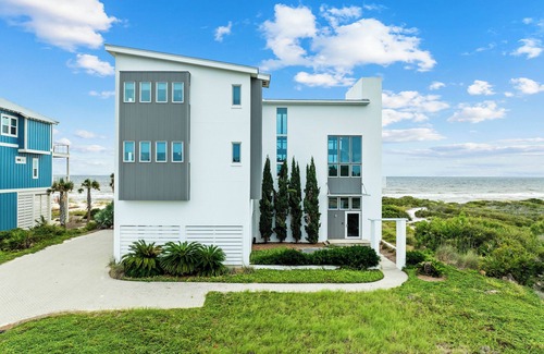 Welcome to Sugar Sands Sanctuary, a luxurious beachfront home located in the exclusive St. George Plantation. This contemporary gem combines stylish design with comfort, offering breathtaking Gulf views from every room and top-tier amenities for an unforgettable stay. With its private infinity pool, spacious decks, and direct boardwalk access to the pristine beaches, this property is your gateway to paradise. Explore the nearby shops, restaurants, and attractions like the St. George Lighthouse Museum, while enjoying the peaceful seclusion of this premium location.
