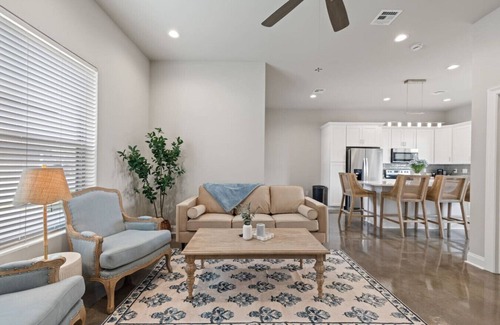 Welcome to your ideal getaway, located just steps away from a premier sports complex. This luxurious unit offers the perfect blend of comfort, convenience, and style, making it the perfect choice for your next stay, whether you're attending an event, enjoying a vacation, or simply need a relaxing retreat. The spacious two-story layout is designed with your comfort in mind. Upstairs, you’ll find two elegantly appointed bedrooms, each featuring a king-sized bed draped in high-quality linens and soft, fluffy pillows, ensuring a restful night’s sleep. The bedrooms also boast large windows that let in plenty of natural light, offering beautiful views of the surrounding area. The master bedroom includes a walk-in closet, providing ample space for all your belongings, while the second bedroom is equally inviting, ensuring all guests experience a high level of comfort. Both rooms feature full-length mirrors, allowing you to check your outfit in its entirety before heading out for a day of adventure or a night out. A spacious workspace desk in the hallway is perfect for those who need to get a little work done during their stay. Whether you're catching up on emails or planning your next day of activities, you’ll have a quiet, well-lit space to work in. The open-concept living and dining area downstairs is the heart of the home. The full kitchen comes fully equipped with everything you could need to prepare your meals, from stainless steel appliances to a full set of cookware. Whether you're making a quick breakfast or preparing a gourmet dinner, the kitchen makes it easy to enjoy home-cooked meals during your stay. There’s also a dining area that comfortably seats all guests, offering the perfect space to enjoy your meals together. Step outside onto the private patio, which is furnished with comfortable seating, making it a great place to unwind after a long day. Whether you’re sipping your morning coffee or enjoying an evening drink, the outdoor space provides a tranquil escape. For your convenience, this unit comes with a washer and dryer, so you can easily keep your clothes fresh and clean throughout your stay. Free parking is available right in front of the unit, ensuring easy access without the hassle of searching for a spot. The luxury amenities extend throughout the property, making sure you have everything you need for a relaxing, enjoyable experience. Whether you’re relaxing in the stylish living room, enjoying a peaceful moment on the patio, or preparing a delicious meal in the kitchen, every aspect of this property is designed to provide comfort and convenience. This unit’s prime location near the sports complex makes it ideal for those attending events or simply looking to enjoy an active lifestyle. Whether you're a sports enthusiast or simply someone who enjoys luxury living with easy access to top-tier attractions, this property is the perfect choice for your next stay. Enjoy a peaceful, yet connected, retreat that offers everything you need for a truly memorable experience.