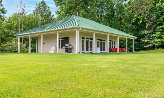 Welcome to Sugarloaf Retreat! This cozy one-bedroom, one-bathroom home on a 300-acre estate offers stunning views, a fully equipped chef's kitchen, and a plush king-sized bed. Relax by the fire pit under the stars after a day of adventure. Conveniently located near Sugarloaf Mountain trails, C&O Canal, golf clubs, roads for biking, and just a short drive from Downtown Frederick, it's the ideal luxury escape in nature.The Sugarloaf Retreat, thoughtfully designed with guests in mind, overlooks fields of green grass and trees, offering a picturesque view that envelops its surroundings. Step inside to discover a bright and spacious floor plan, inviting you to relax and unwind. Sink into the large, comfortable couch adorned with soft throw blankets, or cozy up near the wood stove for a tranquil evening. The chef's kitchen is fully equipped, offering everything you need to prepare delightful homemade meals. Gather around the oversized island, perfect for seating everyone to dine together or engage in lively conversation. The generously sized bedroom boasts ample storage, while the plush king bed is dressed with luxurious sheets, ensuring a restful night's sleep. Refresh yourself in the modern bathroom featuring a sleek glass stall shower. Adjacent to the patio, a wood firepit beckons, offering a cozy spot to gather and enjoy the serene landscape. Discover further tranquility on the property, where a gentle stream meanders through the landscape, adding to the idyllic charm of this retreat. With 300 acres to explore and trails throughout, Sugarloaf Retreat lets you immerse yourself in nature. Additionally, it backs up to Sugarloaf Mountain trails, offering direct access for walks from the property to the mountain.