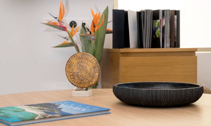 " Suit Anthos " combined unique design and comfort in each and every space that we have created especially for you. The “Suit” is equipped with all the comforts of modern life from our two stylish bedrooms (one with a double bed and the other one with two single beds) that are air conditioned to our high quality and standard mattresses of the well-known company COCO-MAT, to the living room space with the flat screen LED TV and the big soft sofa, in the well-designed bathrooms. The fully equipped kitchen will give you the opportunity to prepare meals for your family and friends and the wooden table in the dining room will welcome you to eat all together. The private outdoor furnished balcony and the common outdoor area (200 sqm.) with the common pool (without chlorine) and with its comfortable sunbeds. Finally, you can park your car in your private parking and not worry about anything.