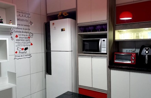 Apt has 3 bedrooms (one with double bed and suite), full kitchen, gourmet balcony with barbecue, 49 inch TV in living room, cable TV with pay-per-view, ceiling fan in living room and bedrooms and vacancy for 2 cars in the garage.