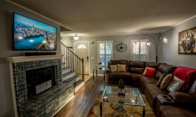 "Suite 102 in Madison" is a keyless entry, 2-bedroom, 2.5 bath "Smart Home". The living room has a flat screen TV, plenty of space for relaxing, movie/game night or preparing for tomorrow's meeting. Kitchen is equipped w/ dishes, coffee maker, kuerig, and appliances. The bedrooms are located upstairs with a queen bed, full bath in each. Command to change lighting, music (upstairs and downstairs), and tv. Washer/dryer and dishwasher inside suite. Also includes a two-car reserved parking space.