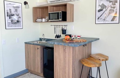 This is a 1 bedroom / 1 bath suite located at "The Ash," a vintage motel renovated into an eclectic and modern mix of vacation rentals.