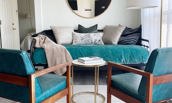 This is a spacious 1 bedroom / 2 bath suite located at "The Ash," a vintage motel renovated into an eclectic and modern mix of vacation rentals.