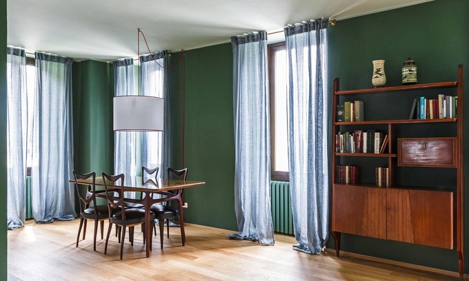 Suite Anguilla directly overlooks the lake and it is characterized by its leaf wallpaper in shades of teal and matched with the greens and blues of the walls. It is finely decorated with unique design pieces, as the large mahogany bookcase in the living. The Suite includes living area, dining area, kitchen, master bedroom, twin bedroom, and two bathrooms.