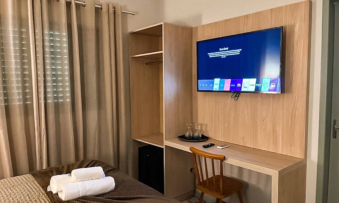 Best-rates for the Suite Casal Aconchegante starts from $56 per night with includes Security/Safety, Bedding/Linens, Child Friendly, Internet, Air Conditioner with all other amenities. Perfect for Weddings is committed to ensuring every guest experiences a comfortable and extraordinary stay, whether planning a romantic getaway, a honeymoon, a pet-friendly stay, or celebrating with the entire wedding party.