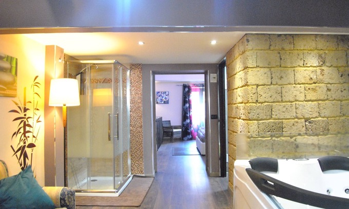 Camera di 60 mq con due ambienti. Zona relax dove potrai fruire in totale privacy di Sauna, Vasca Idromassaggio, Angolo tisane con a disposizione caffè e infusi. Zona letto, con ampio letto matrimoniale in ambiente caldo e accogliente. Nell'incantevole centro storico e posizionato, in un tipica stradina medievale, tranquilla lontano dai rumori e con ingresso indipendente. A pochi passi Ristoranti, Pizzerie, Pub, Bar, Bancomat, Monumenti, Edicole e Tabacchi.